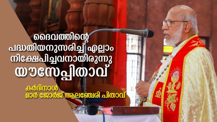 നമുക്കുള്ള സംശയങ്ങളും ജഡികമോഹങ്ങളും വിവിധആവശ്യങ്ങളും ലൗകികചിന്തകളും എല്ലാം കര്ത്താവിന് അടിയറവച്ച് നമ്മുടെ ജീവിതത്തെ കര്ത്താവിന് വേണ്ടി ചെലവഴിക്കാന് നമുക്ക് സാധിക്കണം. ഇതാണ് യൗസേപ്പിതാവ് നമുക്ക് കാണിച്ചുതന്ന മാതൃക. ആലഞ്ചേരി പിതാവ് പറഞ്ഞു