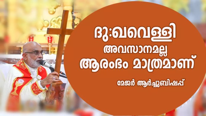 ദു:ഖവെള്ളി ഒന്നിന്റെയും അവസാനമല്ല ആരംഭം മാത്രമാണെന്ന് സീറോമലബാര് സഭമേജര്ആര്ച്ചുബിഷപ്പ് മാര്റാഫേല് തട്ടില് പിതാവ്. കുടമാളൂര് സെന്റ് മേരീസ് മേജര് ആര്ക്കി എപ്പിസക്കോപ്പല് ദേവാലയത്തില് നടന്ന ദു:ഖവെള്ളിതിരുക്കര്മ്മങ്ങളില് മുഖ്യകാര്മ്മികത്വം വഹിച്ചു സന്ദേശം നല്കുകയായിരുന്നു അദ്ദേഹം.