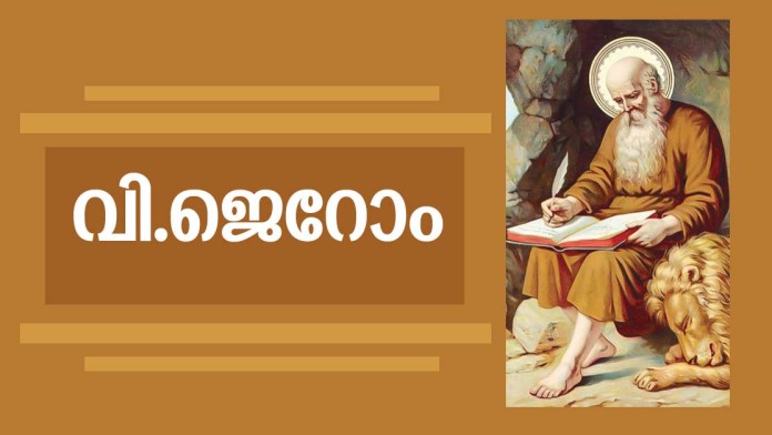 പാശ്ചാത്യപാരമ്പര്യത്തില് മഹാന്മാരായി പരിഗണിക്കപ്പെടുന്ന നാലു സഭാപിതാക്കന്മാരില് ഒരാളാണ് വി.ജെറോം. (വി. അംബ്രോസ്, വി. അഗസ്തീനോസ്, മഹാനായ വി.ഗ്രിഗറി എന്നിവരാണ് മറ്റുമൂന്നുപേര്). അദ്ദേഹം 135 അധ്യായങ്ങളിലായി എഴുതിയ ‘ മഹാന്മാരായ വ്യക്തികളെക്കുറിച്ച് ‘ ( De Viris Illustribus ) എന്ന ഗ്രന്ഥത്തിന്റെ 135 -ാം അധ്യായം ജറോമിനെക്കുറിച്ചുതന്നെയാണ്. തന്റെ പിതാവിന്റെ പേര് എവുസേബിയൂസ് എന്നാണെന്നും താന് ജനിച്ചത് സ്ത്രീദോ( ഇപ്പോഴത്തെ സ്ളൊവേനിയാ) എന്ന സ്ഥലത്താണെന്നും അദ്ദേഹം സാക്ഷ്യപ്പെടുത്തുന്നുണ്ട് ( De Viris Illusteribus 135,1). സ്വന്തം കൃതികളുടെ നീണ്ടനിരയും അദ്ദേഹം ഇവിടെ നല്കുന്നു. എ.ഡി 347 ഓടെ ഒരു സമ്പന്ന ക്രിസ്തീയകുടുംബത്തില് പിറന്ന വി. ജെറോം എ.ഡി 420 ല് ബത്ലഹേമില്വച്ചാണ് മരണമടഞ്ഞത്. പ്രാഥമികവിദ്യാഭ്യാസത്തിനു ശേഷം പന്ത്രണ്ടാമത്തെ വയസില് തുടര്പഠനത്തിനായി റോമില് എത്തിയ അദ്ദേഹം എ.ഡി 366 ല് ലിബേരിയൂസ് പാപ്പയില് നിന്ന് മാമ്മോദീസാ സ്വീകരിച്ചുവെന്ന് കരുതപ്പെടുന്നു.